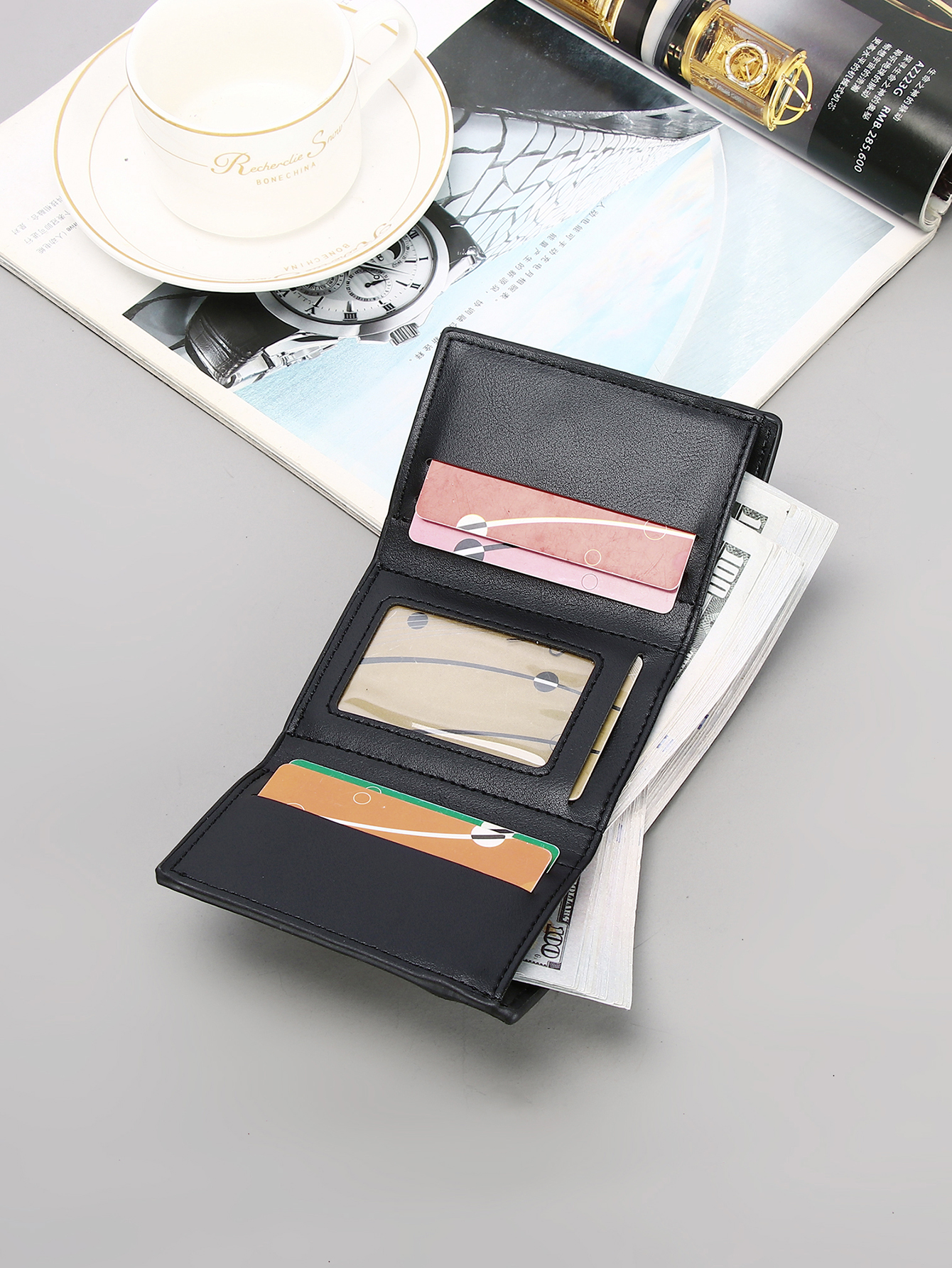 • Men's three-fold embossed pu black wallet
